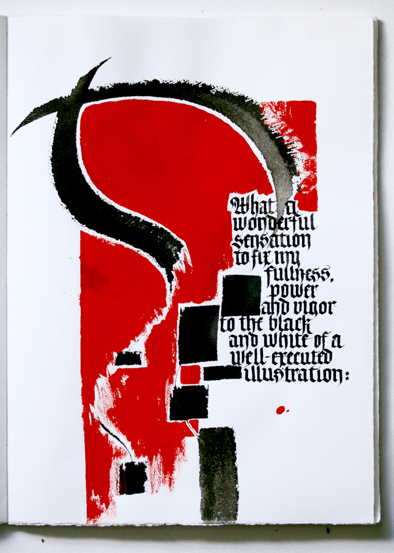 The piece was executed on the beautiful Brazilwood dyed vellum