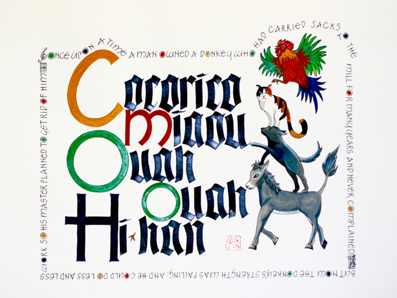 off with 24k gold leaf. Gouache was used to paint in the rest of